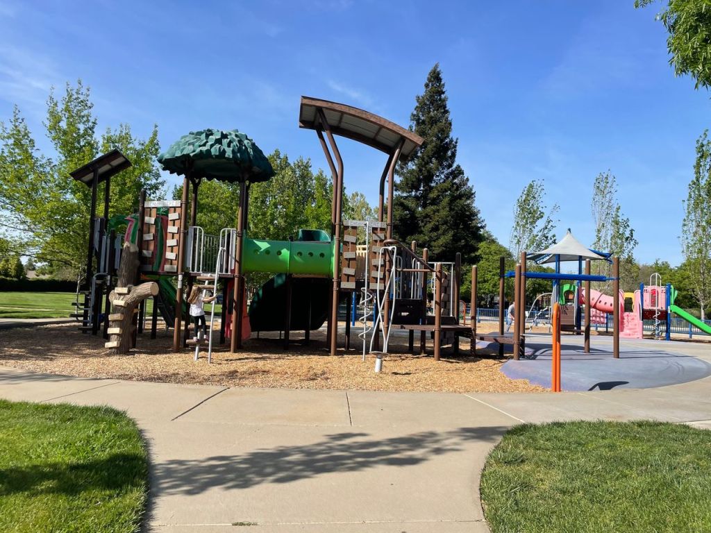 My kids had a lot fun at this park! This park has tons of slides and climbing walls. The big kid area has large slides, monkey bars, and is in shade part of the day.