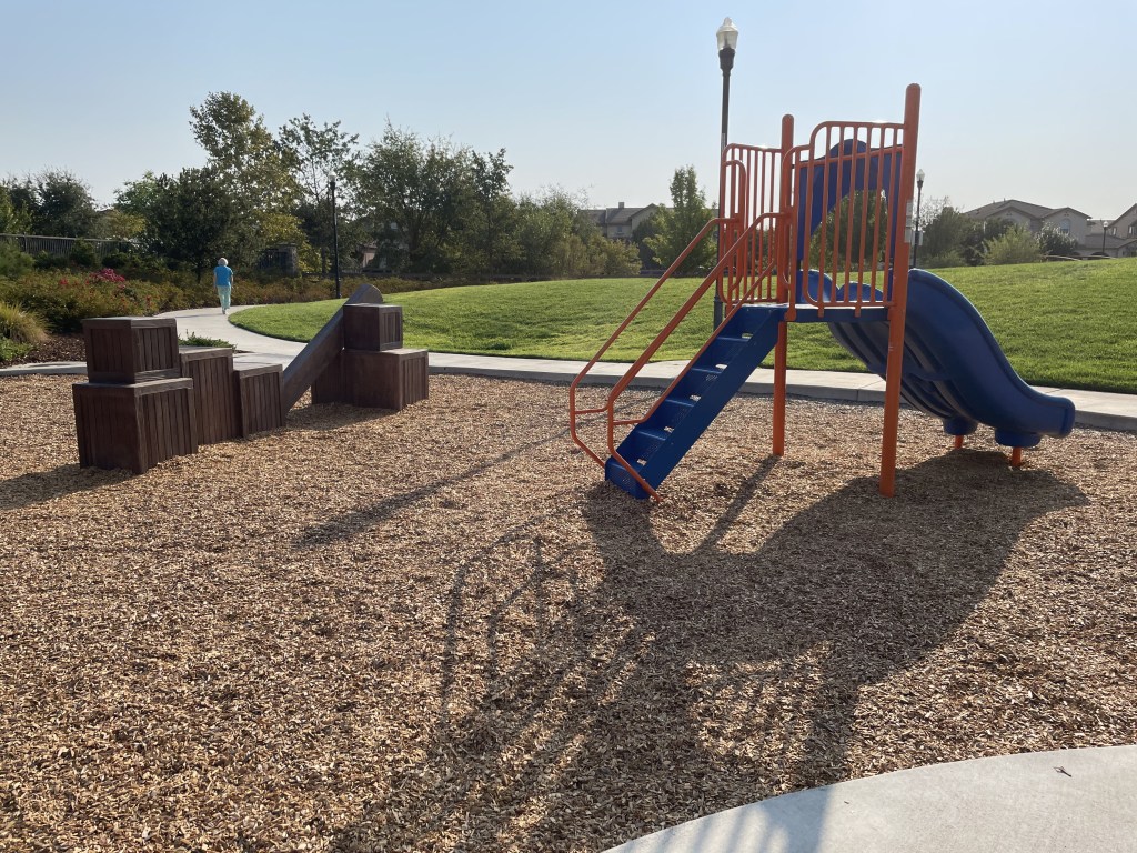 It’s in a quiet neighborhood and is perfect for little ones. There is a great path around it so kids can ride their scooters. There is a clean sand pit and a large grass hill kids can roll down. If you are lucky you can see rabbits in the creek behind the park.