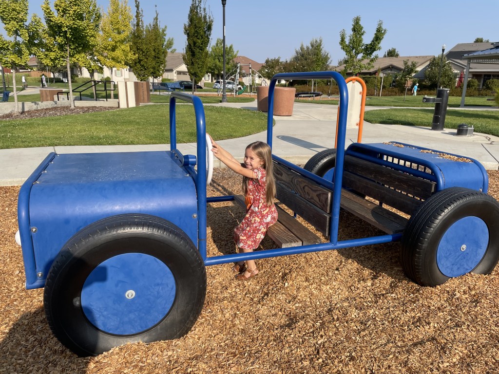 There isn’t many play structures but just enough for the littles to hide in and climb on. My kids loved playing hide and seek at this park. Three cons are no bathrooms, not much shade and tanbark everywhere.