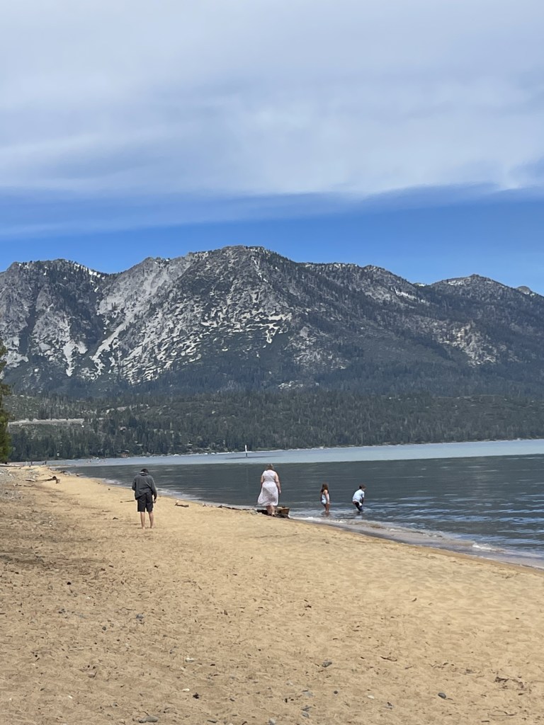 First spot was the beach. We discovered a secret spot…. Tallac Historical Site South Lake Tahoe. Here you will find the perfect little beach with free parking, clean bathrooms, a rinse off area and dogs are allowed. The parking is close to the beach as well! I am not sure how this beach would be on any other day but when we went it was empty.
