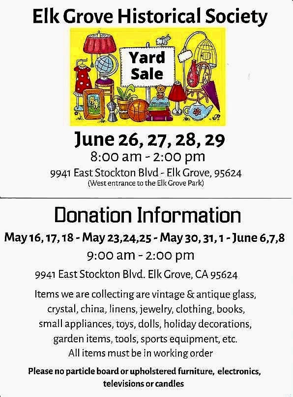 Details: Yard sale for the next 4 days at Elk Grove Historical Society